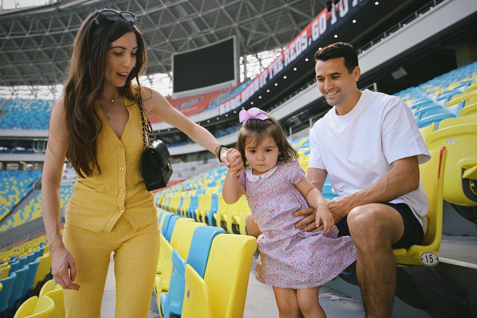 ▲周定洋与家人在凤凰山体育场图据视觉中国