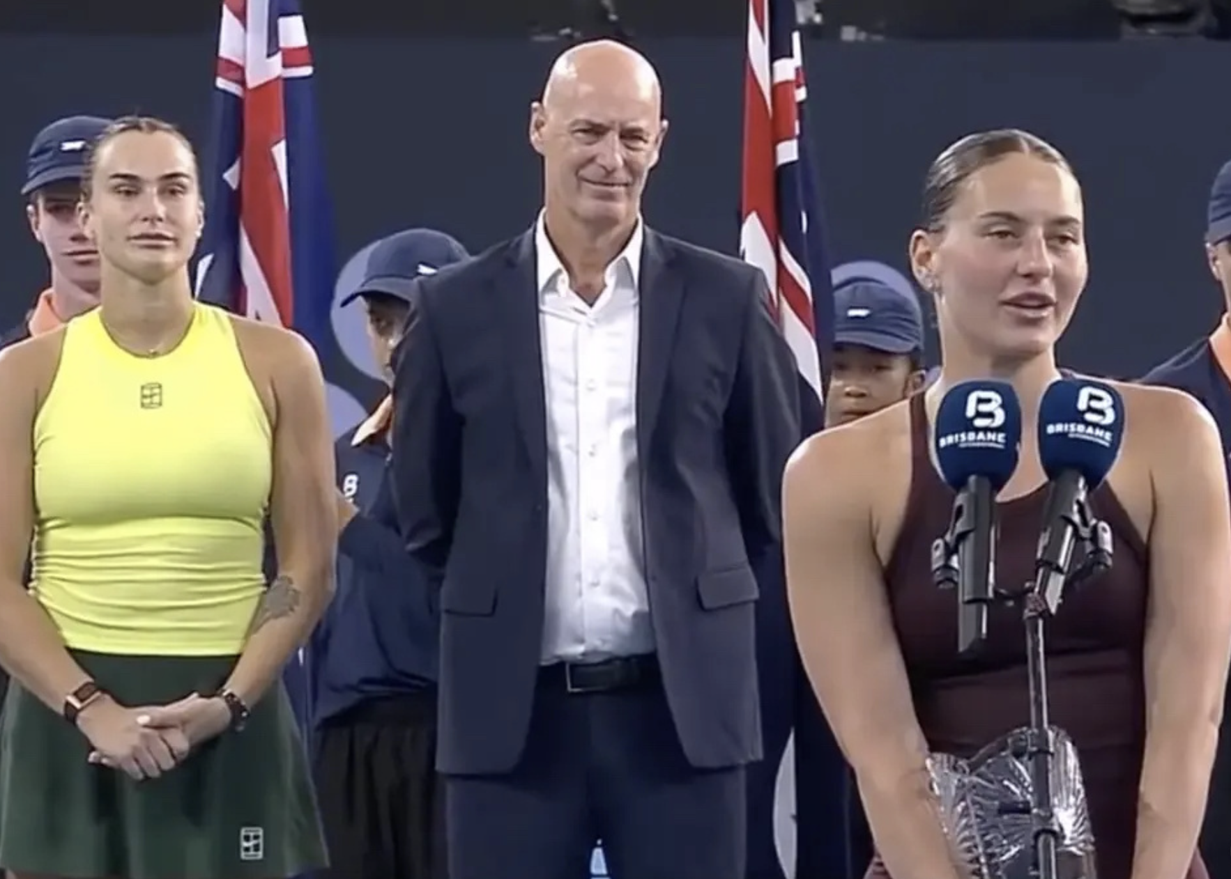 无独有偶,11天前,在WTA500布里斯班站决赛的赛后,世界第23位的乌克兰名将科斯秋克也抵制了萨巴伦卡。那场决赛,科斯秋克0-2输给了萨巴伦卡。赛后,她拒绝与萨巴伦卡握手。发表讲话的时候,她强调自己的国家正在承受灾难。
